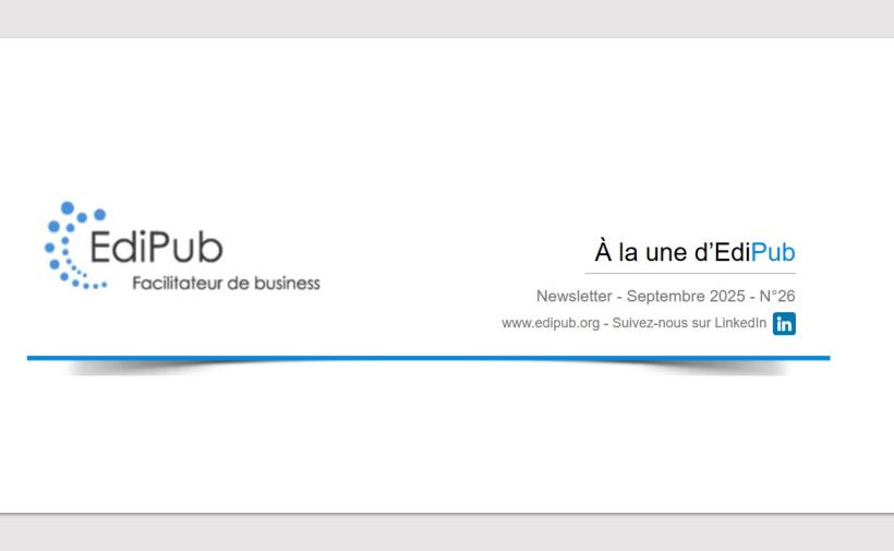 EdiPub développe l’ambition de toujours mieux porter les défis au long cours de l’ensemble de ses adhérents. Automatisation, dématérialisation, standardisation et interopérabilité restent les maitres mots 2025 de EdiPub, dans une recherche constante de productivité et d’écoresponsabilité. Accompagnateur des orientations fondamentales business et métiers, EdiPub a le combo gagnant ! Des permanentes à l’écoute, des administrateurs impliqués et surtout des membres actifs et contributifs, coordonnés par leurs instances inter professionnelles.